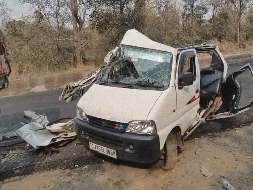 गुजरात के ऊंझा-मेहसाणा हाईवे पर शनिवार सुबह मिनी वैन डिवाइडर से टकराकर पलट गई। हादसे में एक ही परिवार के पांच लोगों की मौत हो गई। 6 अन्य घायल हो गए। हादसा उनाव गांव के पास हुआ।